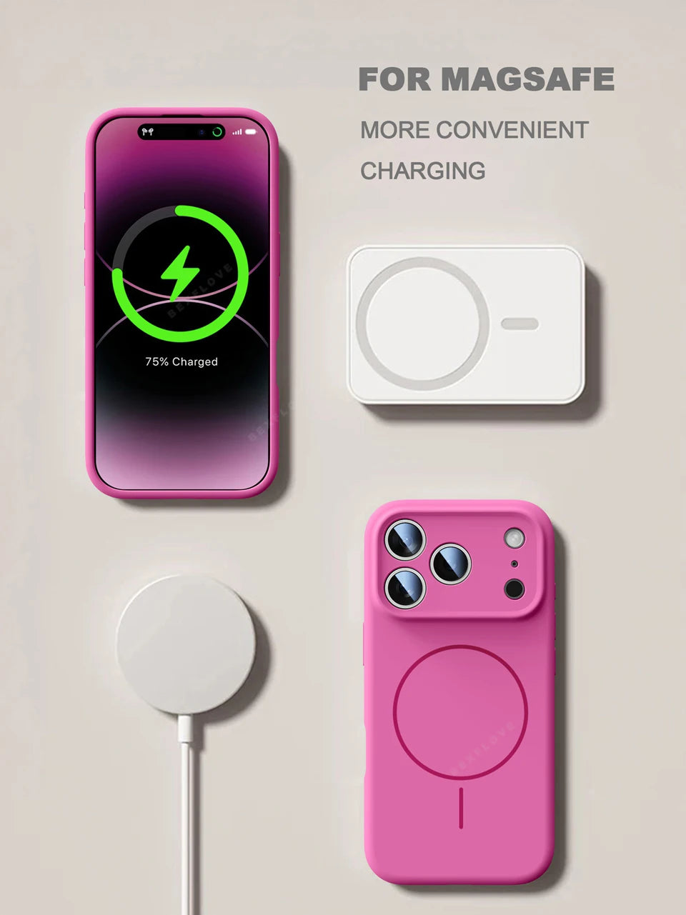 Magnetic Wrist Strap Liquid Silicone MagSafe Phone Case for iPhone